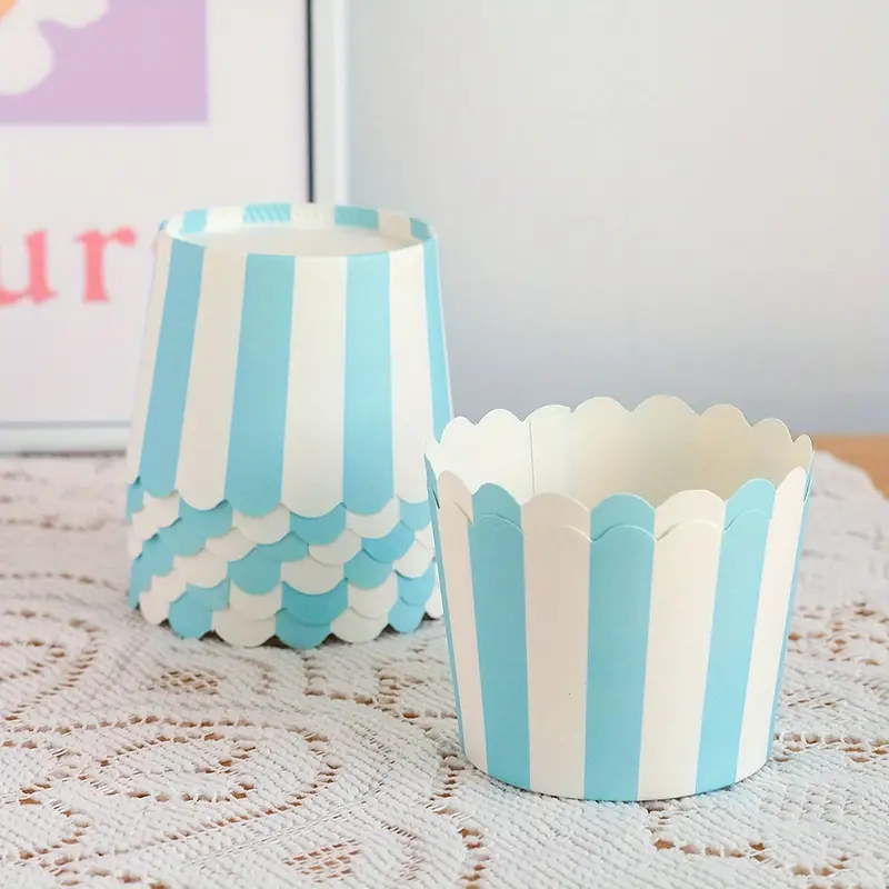 / 50pcs, Colored Stripes Muffin Cups, Disposable Cupcake Cups, Heat Resistant Paper Cupcake Liners, Muffin Molds, Baking Tools, Kitchen Gadgets, Kitchen Accessories